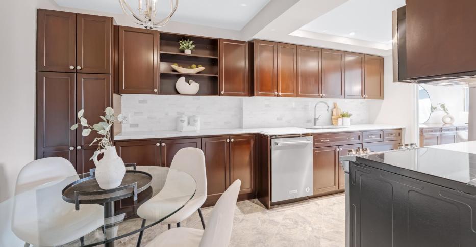 Winning at Wynford! Step into this elegant and spacious southwest facing corner suite with 1,374 square feet of living space. This bright 2- bedroom, 2 bathroom, plus den has a layout that checks every box. Whether you are upsizing, downsizing, or searching for the ideal work-from-home setup, this versatile floor plan delivers comfort, style, and exceptional value with no wasted space. The primary bedroom retreat includes a full spa-like ensuite and large closet, while the second bedroom and full guest bathroom provide flexibility for family or guests. The den is tucked away and can either be a home office, or an additional cozy area where you can get caught up on your reading. Kitchen has loads of storage, stainless steel appliances and an eat-in area perfect for casual meals or your morning coffee. Tons of closet space in the foyer, and a separate room for full sized laundry!