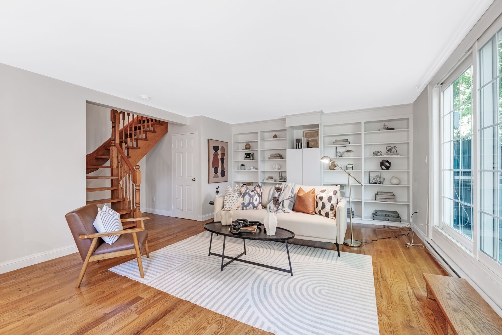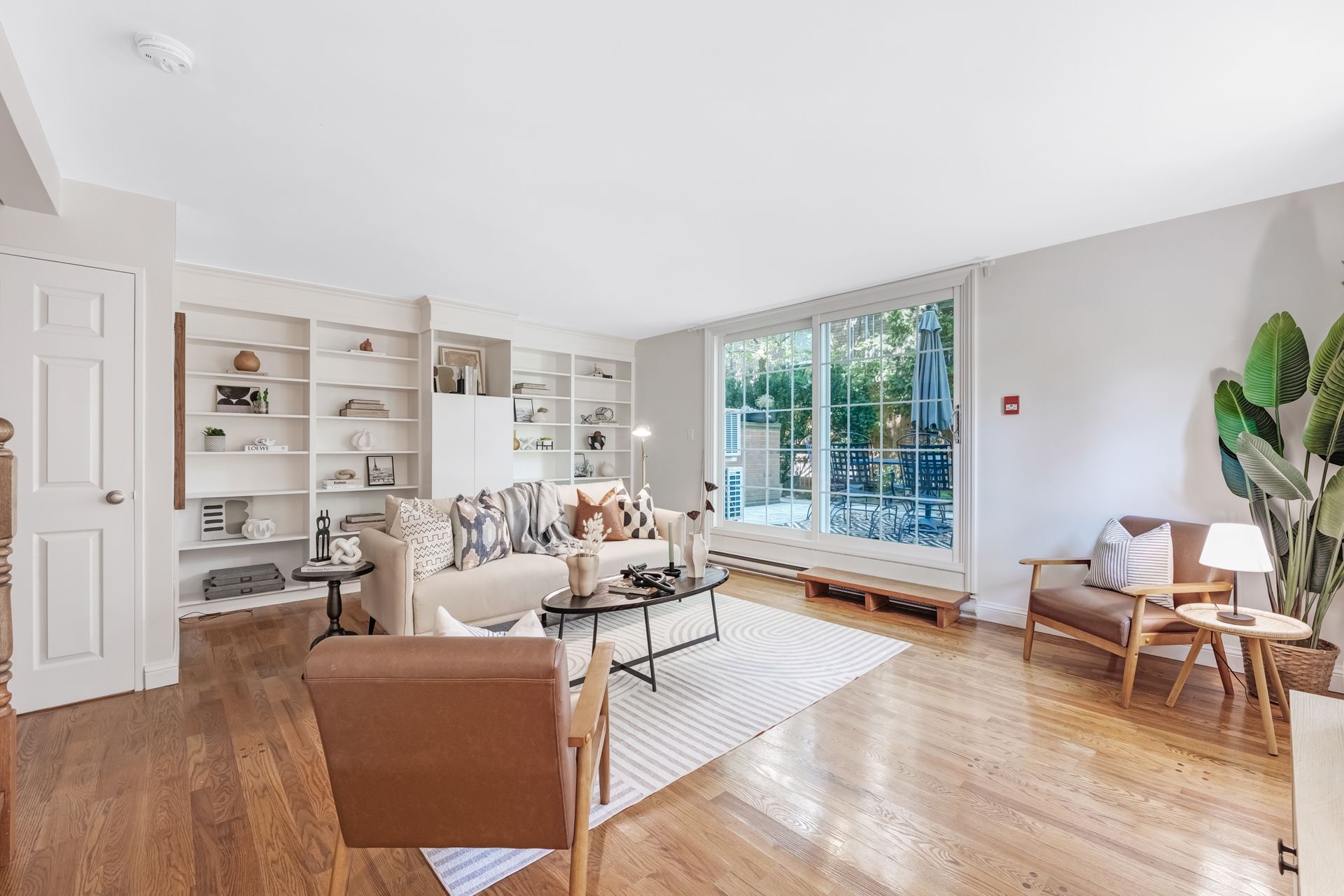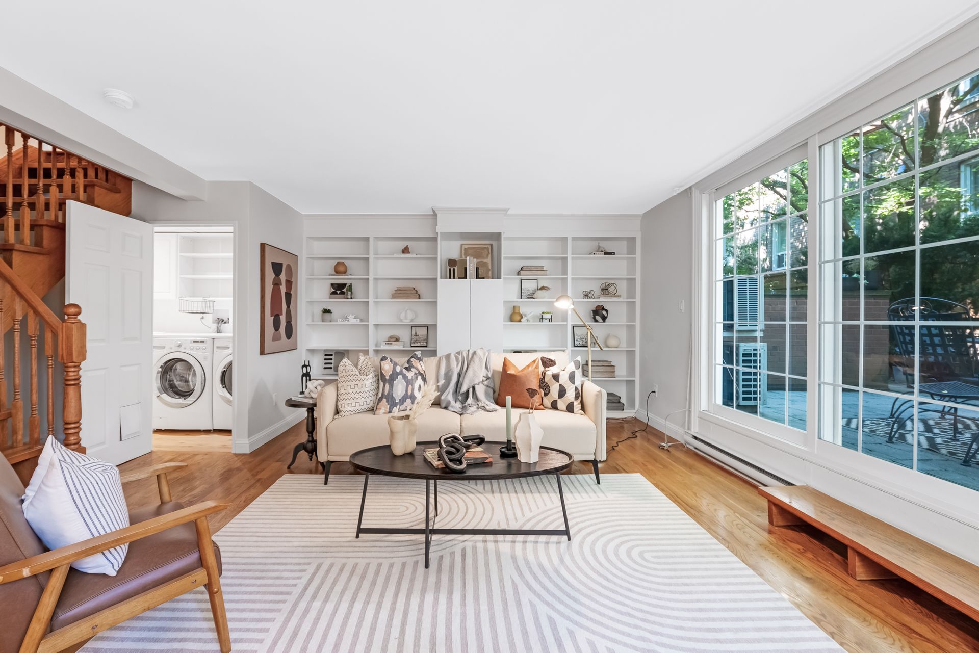 The ground-level family room boasts full-wall library shelves — a challenge for even the most devoted reader — and walks out to your exclusive outdoor retreat, ideal for cocktails and al fresco moments.