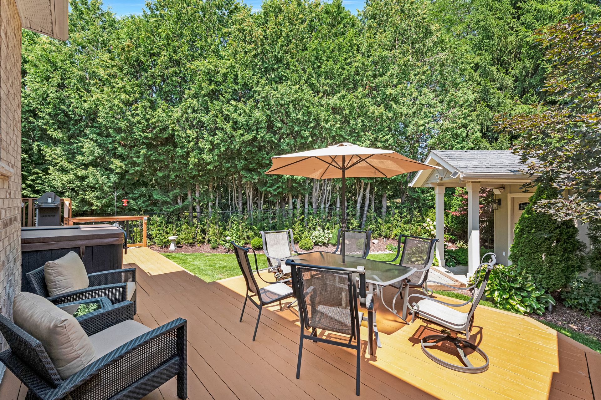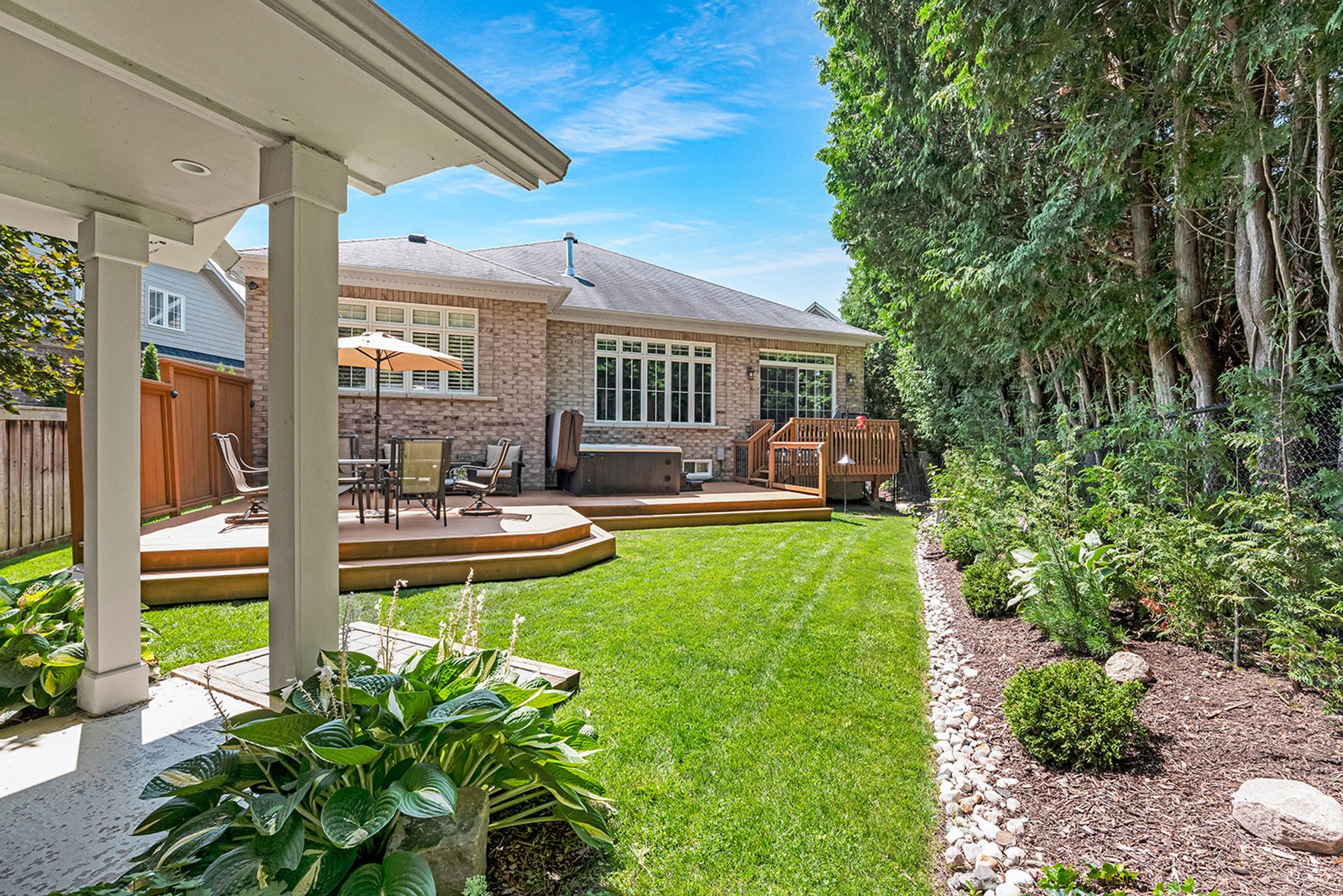 On one of Brooklin’s most desirable streets, just a 15-minute walk to downtown, sits this Tribute Homes Executive Bungalow, where timeless design meets everyday comfort. Soaring 10’ ceilings, crown moulding, pot lights and hardwood floors set the tone, while the chef’s kitchen with large island, stone counters, gas range and custom cabinetry flows into a bright family room with gas fireplace and walkout to a private backyard oasis. Enjoy professional landscaping, irrigation, lighting, powered shed, Hydropool hot tub and Natural gas Napoleon BBQ—perfect for relaxing or entertaining. The main floor offers a formal dining room with coffered ceiling, laundry with garage access, a powder room, and 3 bedrooms, 2 with ensuites, including a serene primary retreat with spa-like bath. The finished basement adds a spacious rec room with fireplace, additional bedroom, 3pc bath, workshop, walk-in closet and ample storage. Complete with 2-car garage with new Clopay doors, and easy access to schools, parks, downtown Brooklin, shopping and the new Whitby Sports Complex (opening soon)! Home Inspection Report available.