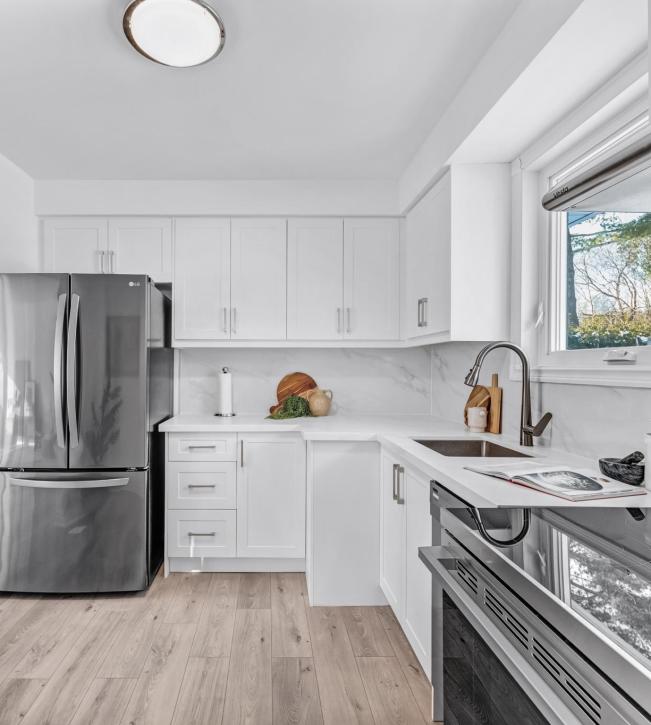 The interior has been beautifully and thoughtfully renovated with approximately $100,000 in recent upgrades, creating a bright and modern living environment. Sun-filled rooms with newer windows, updated flooring throughout, and a fully redesigned kitchen make the main level both stylish and functional. The finished basement adds valuable flexibility with additional living space, a 3-piece bathroom, and a separate entrance; the home also features a huge, enclosed storage area with custom floor to ceiling shelving covering an entire wall for organization —ideal for extended family or future customization.