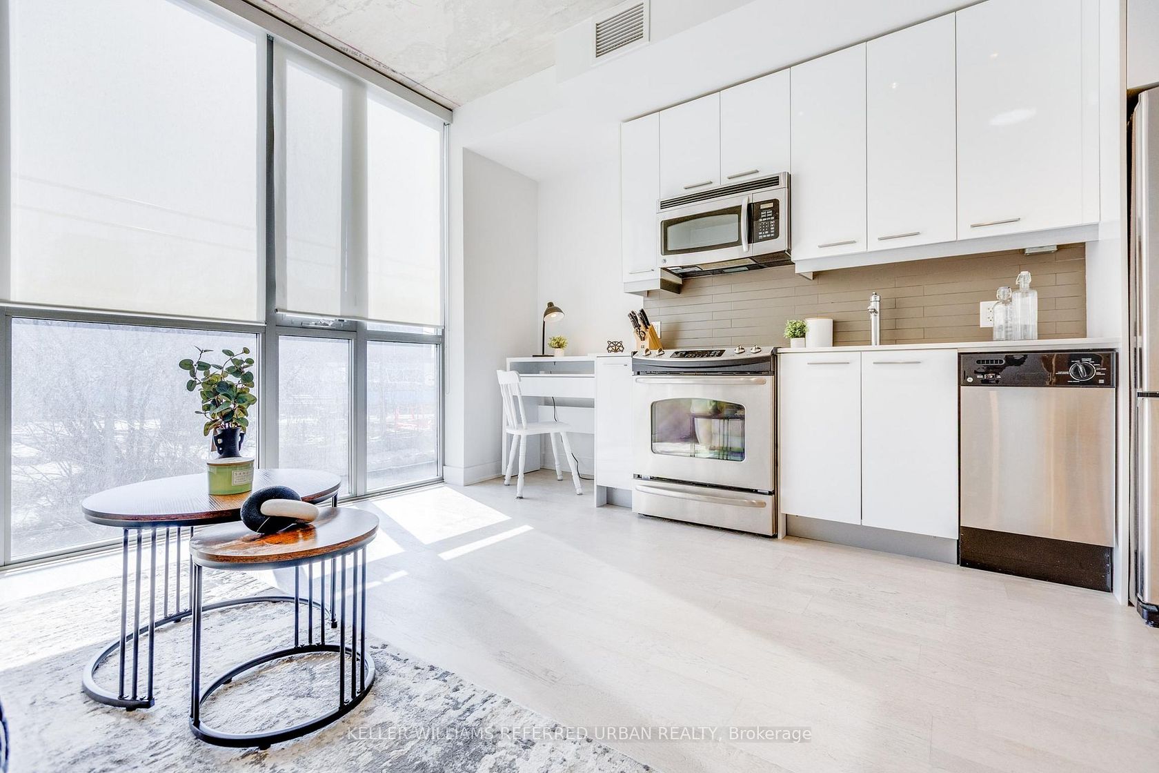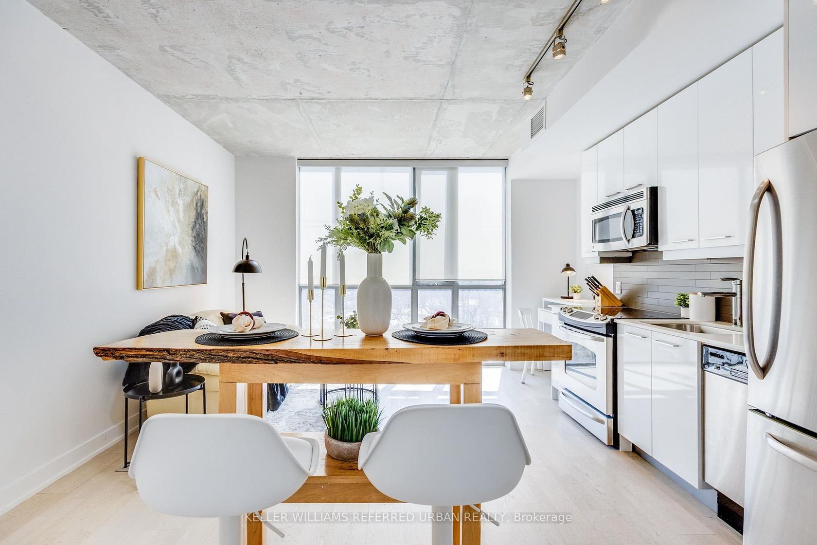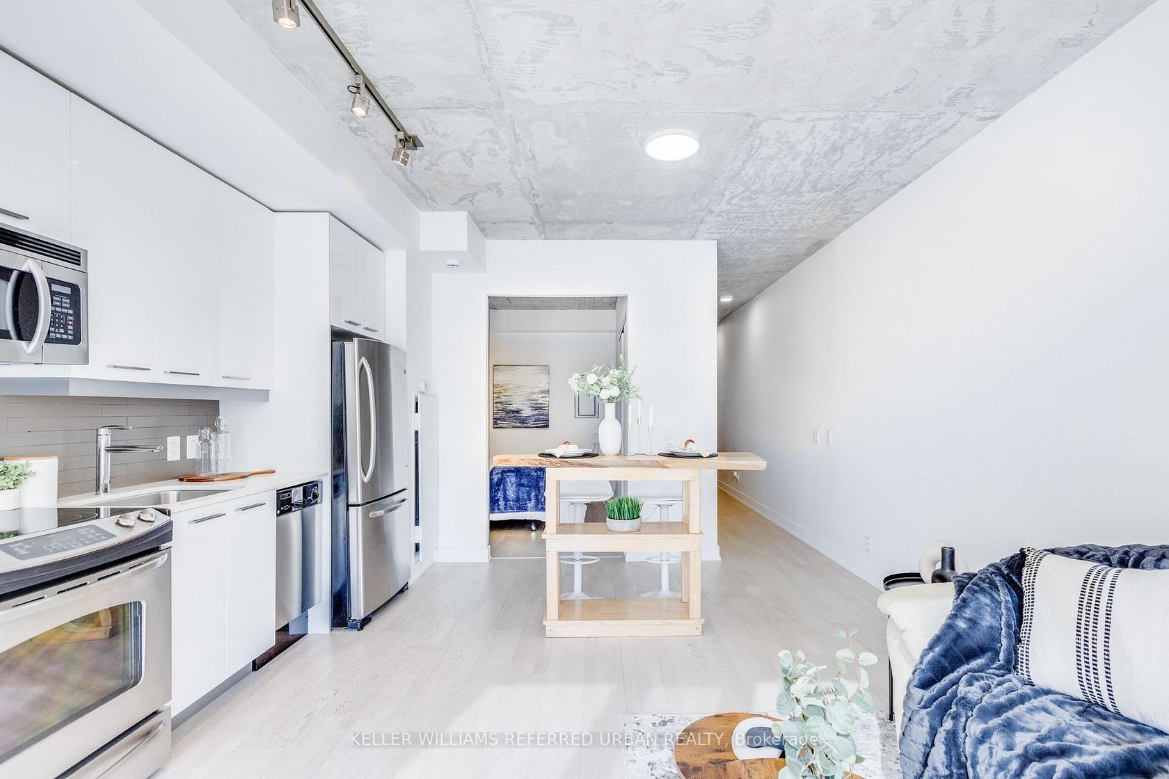 Welcome To Boutique Loft Living At 2 Gladstone In The Heart Of Vibrant Queen West. This Stylish 1-Bedroom Suite Offers Approx 550 Sq Ft Of Thoughtfully Designed living space in an Intimate Mid Rise Building. Featuring 9' Exposed Concrete Ceilings, Floor-To-Ceiling Windows And Hardwood Floors Throughout. Highly Sought After South Exposure Fills The Unit With Lots of Natural Light In Open Concept Layout. Ideal 2nd Floor Unit W/Optional Use Of Stairs For Easier Access. The Modern Kitchen is Equipped With Stainless Steel Appliances, Quartz Countertops, and a Sleek Glass Backsplash, Seamlessly Flowing into the Living and Dining area-Perfect For Entertaining or Relaxing. The Spacious Bedroom Includes Ample Closet Space and it Includes Locker for More Storage.Location Can't Be Beat! Steps from Queen West's Best Restaurants, Cafes, Shopping, Eclectic Boutiques and Nightlife. Metro, Starbucks, RBC, and LCBO are Conveniently Located in the Complex, with The 24-Hour TTC Queen Streetcar Right At Your Doorstep for Easy Access Across the City.A Perfect Opportunity for First-time Buyers, Investors, or Urban Professionals Seeking Stylish Loft Living in One of Toronto's Most Dynamic Neighbourhoods.
