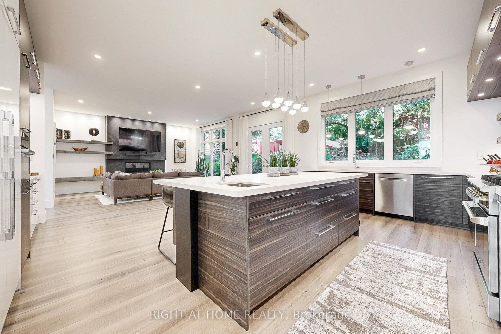 A truly spectacular opportunity in the prestigious West Shore community! This custom home showcases over 4,400 sq. ft. of refined luxury, designed for both grand entertaining and comfortable family living. From the striking curb appeal with black-framed windows and a timeless combination of natural stone and stucco, every detail speaks to quality and sophistication. Step inside to an impressive open-concept layout filled with natural light and elegant finishes. Expansive principal rooms on the main level feature soaring 10-ft ceilings, wide-plank hardwood floors, and a custom-crafted fireplace mantle that serves as a stunning focal point. The chefs kitchen is a culinary masterpiece with top-of-the-line appliances, quartz countertops, an oversized island, servery, and a walk-in pantry perfect for hosting gatherings in style. The upper level offers 9-ft ceilings and a private primary retreat complete with a bar area, generous walk-in closet, and a spa-inspired ensuite with luxurious finishes. Additional spacious bedrooms, each with custom closet organizers, ensure comfort for family and guests, while the second-floor laundry room adds convenience. The fully finished lower level expands the living space with a gas fireplace, a full 3-piece bath, and endless possibilities for recreation or relaxation. Outside, the private backyard is designed for entertaining with a large patio and BBQ gas line, creating the ideal setting for summer evenings. Enjoy the unmatched lifestyle of West Shore steps to the lake, waterfront trails, parks, and top-rated schools, with easy access to shopping and Highway 401. This exceptional residence combines timeless elegance with modern convenience in one of the areas most coveted communities.