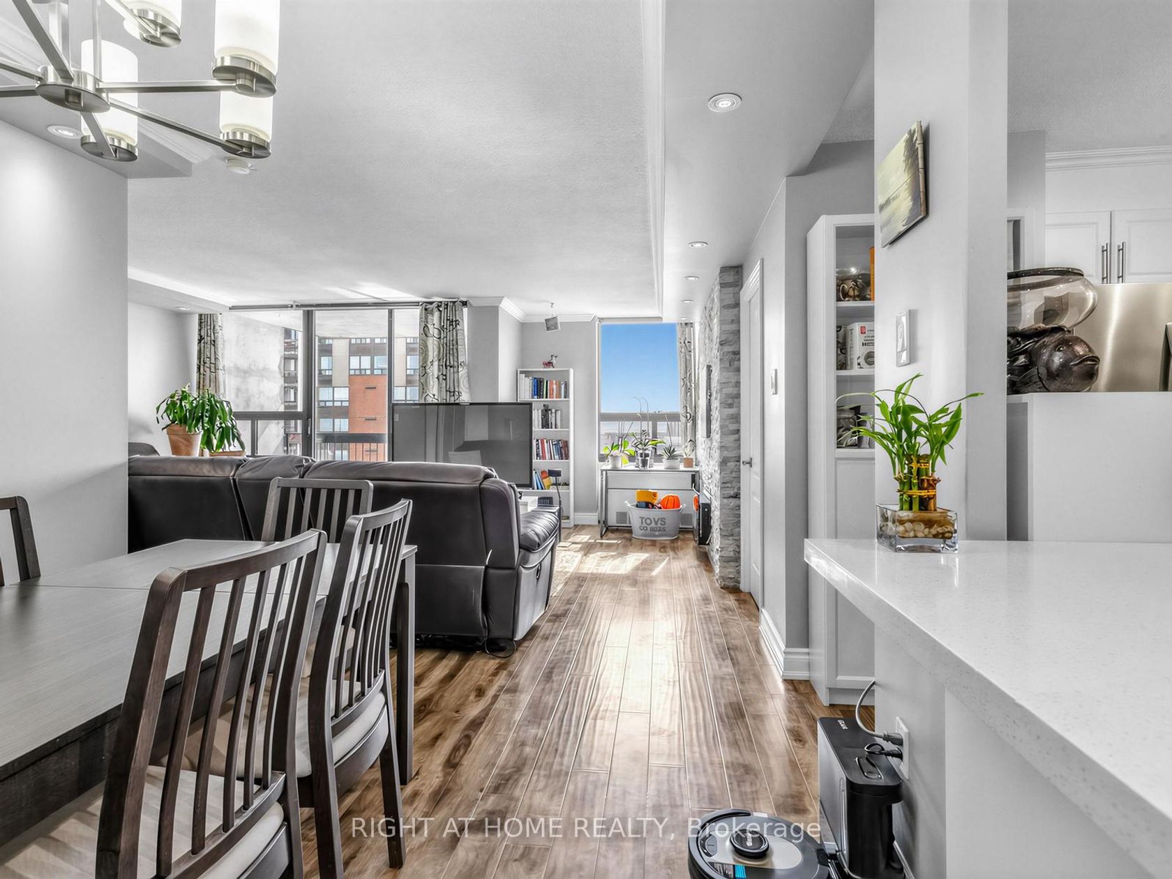 Spacious 3-Bedroom Condo in the Heart of Mississauga with Lake Views. Move in and enjoy this beautifully upgraded 3-bedroom, 2-full-bathroom condo located in the heart of Mississauga. This bright and spacious unit features an open-concept kitchen with abundant cabinetry, stainless steel appliances, quartz countertops, and stylish laminate flooring through out. The primary bedroom includes a private 4-piece ensuite, while the two additional bedrooms offer large windows that bring in plenty of natural light. The generous living room is perfect for relaxing or entertaining and is complemented by a separate dining area. Additional highlights include: Laminate flooring throughout the entire unit, Upgraded light fixtures, Spacious ensuite storage room, Ensuite washer and dryer, Two entrances to the unit, Private balcony with distant lake views. The maintenance fee covers common elements, building insurance, parking, water, cable TV and High Speed Internet, offering excellent value. Residents enjoy fantastic building amenities, including: Indoor swimming pool, Gym/fitness Centre, Visitors' lounge, Ample visitor parking. The location is exceptionally convenient-just minutes' walk to the Future LRT, Cooksville GO Station, public transit, and major highways. You're also close to shopping, schools, and major destinations such as Mississauga Valley Community Centre, Public and Catholic Elementary, Secondary and High Schools, Square One Shopping Centre, Sheridan College, Mississauga Celebration Square, the Mississauga Central Library, and the YMCA.A perfect opportunity for families, professionals, or investors looking for space, convenience, and lifestyle in central Mississauga.