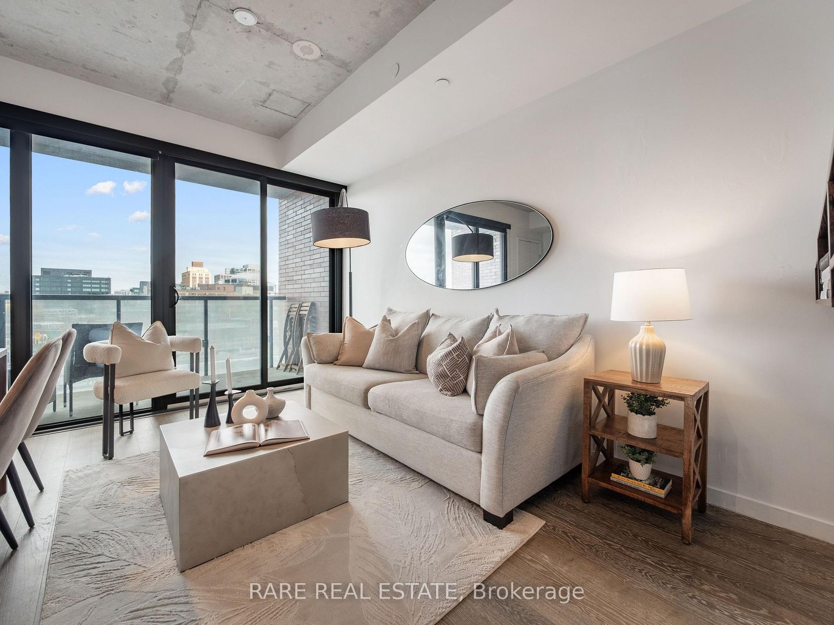 Offers anytime! Welcome to Suite 608 at 383 Sorauren Avenue, a stylish one-bedroom plus den boutique condo in the heart of Roncesvalles. Tucked away on a quiet, tree-lined street, this light-filled suite blends modern loft-inspired design with the charm of one of Toronto's most vibrant neighbourhoods. Inside, you'll find soaring 9-foot exposed concrete ceilings, hardwood floors, and large windows showcasing unobstructed north-west views and filling the space with natural light. The thoughtfully designed layout offers flexibility for a home office, guest space, or creative studio, while the modern kitchen features an island, integrated appliances, and sleek finishes perfect for everyday living and entertaining. Storage is exceptional with a full wall of custom built-in closets providing generous clothing organization, a spacious in-suite storage area just off the dining room, and an additional storage locker. Step outside to enjoy a large private balcony and immediate access to Sorauren Park with its popular farmers' market and dog park. Just minutes away, Roncesvalles Avenue, Dundas Street West, and Queen Street West offer an incredible selection of cafés, restaurants, galleries, and independent shops. Residents enjoy premium amenities including a fully equipped gym, concierge service, party room, guest suite, visitor parking, and bike storage. Boutique condo living paired with the vibrant lifestyle of Roncesvalles.